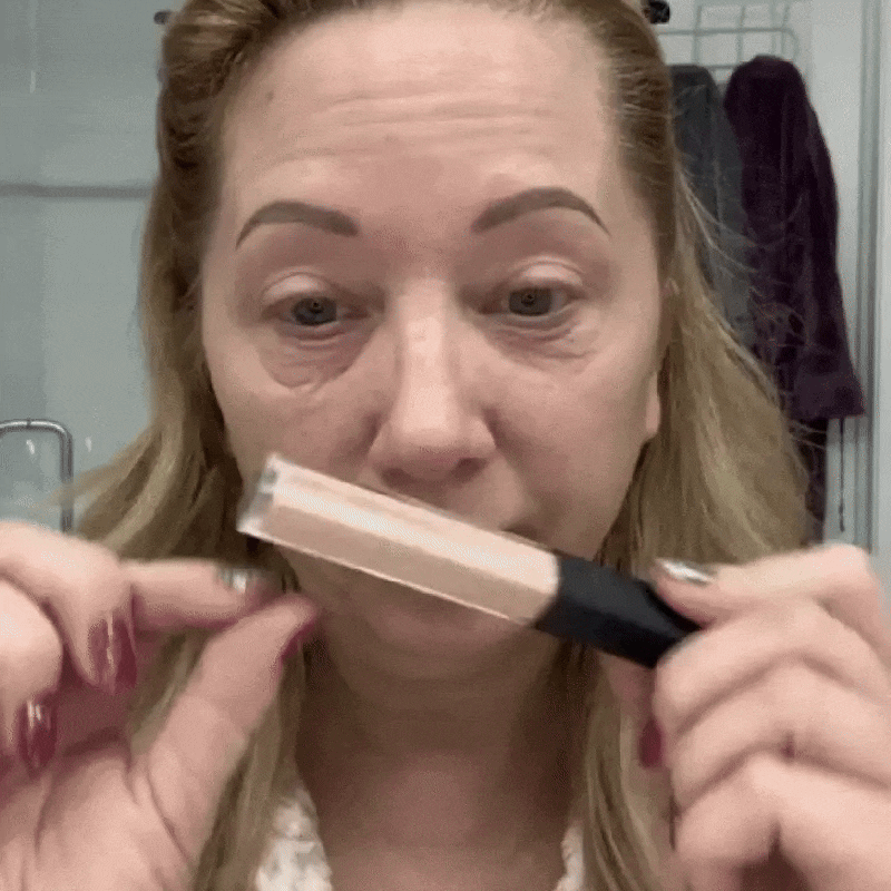 2. Apply thinly under the eyes (not on the eyelids) and keep your face relaxed for 60 seconds until it dries.