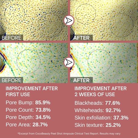 Watch your pores transform, day by day. Each time you apply CocoBeauty’s Peel Shot Glow Rice Ampoule Duo, you’re not just applying skincare—you’re reclaiming confidence.
